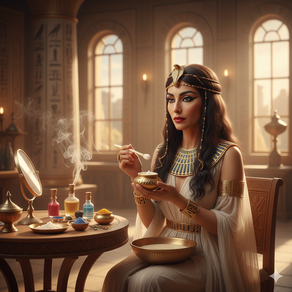 كشفت الدراسات التاريخية والبرديات الطبية، مثل “بردية إيبرس” و”بردية إدوي سميث”، أن المرأة الفرعونية، وعلى رأسهن الملكتان كليوباترا ونفرتيتي، لم تكن تعتمد على الصدفة في جمالها، بل استندت إلى علم متطور بالمواد الطبيعية، فقد اعتمدت النساء في مصر القديمة سر “حمام الحليب والعسل” كأهم وصفة لترطيب البشرة وتفتيحها، حيث يحتوي الحليب على حمض اللاكتيك الذي يعمل كمقشر طبيعي، بينما يعمل العسل كمضاد حيوي ومرطب عميق، ومن أسرار جمال العيون الفتاكة استخدام “الكحل العربي” المصنوع من مسحوق الجالينا، والذي لم يكن للزينة فقط، بل كان وسيلة لحماية العيون من أشعة الشمس القوية وحشراتها، كما برعت الفراعنة في ابتكار أول وصفة لمنع تجاعيد الوجه باستخدام زيت الحلبة ومستخلص نبات الصبار، وهي مواد أثبت العلم الحديث قدرتها الفائقة على تجديد خلايا الجلد، وللحفاظ على نضارة الجسم وتوحيد لونه، استخدمن ملح النطرون كمقشر لإزالة الجلد الميت، متبوعاً بدهن الجسم بزيوت عطرية مثل زيت اللوز وزيت الخروع وزيت اللبان الذكر الذي يُعد “بوتوكس” الفراعنة لشد الترهلات، أما سر الشعر الكثيف واللامع فقد كان يكمن في خلطات دهن الغزال مع زيت الخروع والحناء، وبحسب ما جاء في كتاب “الطب المصري القديم” للدكتور حسن كمال، فإن هذه الوصفات كانت تُحضر بدقة متناهية تحت إشراف “كاهنات التجميل” في المعابد، ومن أعظم أسرار الجمال الموثقة في “بردية هيرست” ما يُعرف بـ “دهان التماسك والنضارة”، وهو بديل البوتوكس القديم الذي اعتمد على صمغ اللبان الذكر المنقوع في ماء الورد ليلة كاملة حتى يتحول للون الحليبي، ممزوجاً بزيت الحلبة الذي وصفته البردية بأنه “يطرد الشيخوخة من الجسد”، مع إضافة مسحوق بيوض النعام الغني بالبروتين لشد البشرة فورياً، وفي “بردية برلين” الطبية وُجدت نصوص لتعطير وتفتيح الجسم بمزيج “بخور الآلهة” المكون من المر والقرفة والزعفران ودهن الإوز، بينما كشفت “بردية كاهون” عن استخدام مسحوق “صدف المحار” الممزوج بالعسل لتنظيف المسام الواسعة وعلاج حب الشباب والبقع، حيث يعمل مسحوق الصدف كمقشر فيزيائي يزيل الندوب ويرمم الجلد التالف، مما جعل جمال المرأة المصرية القديمة أيقونة عالمية عبر العصور.