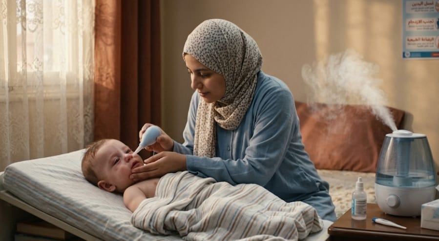 ​يُعد التهاب القصبات الهوائية من العدوى الفيروسية الشائعة التي تصيب الجهاز التنفسي لدى الرضع والأطفال الصغار، حيث يؤدي إلى تورم وضيق في الممرات الهوائية الصغيرة في الرئتين، مما يعيق تدفق الهواء بشكل طبيعي، والسبب الرئيسي لهذا المرض هو العدوى الفيروسية، وأبرز الفيروسات المسببة له هو الفيروس المخلوي التنفسي (RSV) الذي ينتشر غالباً في فصول الشتاء والربيع، بالإضافة إلى فيروسات أخرى مثل فيروس الإنفلونزا وفيروس الأدينوفيروس، وينتقل الفيروس عبر الرذاذ المتطاير من السعال أو العطس، أو عن طريق لمس الأسطح الملوثة ثم لمس الطفل لعينه أو أنفه، وتبدأ الأعراض عادةً كزكام عادٍ، ثم تتطور خلال أيام لتشمل سعالاً جافاً ومستمراً وأزيزاً وهو صوت صفير عند التنفس، وصعوبة أو سرعة في التنفس مع ارتفاع طفيف في درجة الحرارة وفقدان الشهية أو صعوبة في الرضاعة، وبما أن المرض فيروسي، فإن المضادات الحيوية لا تجدي نفعاً في علاجه، ويعتمد العلاج بشكل أساسي على الرعاية المنزلية وتخفيف الأعراض عبر الحرص على إعطاء الطفل كميات كافية من السوائل لتجنب الجفاف، واستخدام قطرات المحلول الملحي وشفاط الأنف لتسهيل عملية التنفس والرضاعة، مع استخدام جهاز ترطيب الجو لتهدئة السعال، والتأكد من حصول الطفل على قسط كافٍ من النوم، وفي الحالات الشديدة مثل زرقان الشفاه أو صعوبة التنفس الحادة قد يحتاج الطفل إلى دخول المستشفى لتلقي الأكسجين أو السوائل الوريدية، وللوقاية يجب غسل اليدين باستمرار وتجنب مخالطة الأشخاص المصابين وتطهير الأسطح والألعاب والامتناع التام عن التدخين السلبى وتعزيز الرضاعة الطبيعية لتقوية المناعة، ومن الضروري جداً مراقبة علامات الخطر التي تستوجب التوجه فوراً للطوارئ مثل اتساع فتحات الأنف عند كل نفس مما يدل على مجهود مضاعف، أو انكماش الجلد بين الضلوع أو عند قاعدة الرقبة، وتغير لون الشفاه أو الأظافر إلى الزرقة أو الرمادي، أو دخول الطفل في حالة خمول شديد وصعوبة في الإيقاظ، كما يجب تصحيح بعض الخرافات الشائعة حيث أن الدهانات الموضعية مثل “الفيكس” قد تزيد من تهيج الشعب الهوائية لمن هم دون السنتين، ولا ينصح بإعطاء أدوية قوية لإيقاف السعال فوراً لأنه وسيلة الجسم لطرد البلغم، ويجب التمييز بين هذا الالتهاب والربو، فالأول إصابة عارضة ناتجة عن فيروس بينما الربو حالة مزمنة تتكرر بنوبات نتيجة محفزات معينة ولها تاريخ عائلي، ويُنصح بيئياً برفع رأس الطفل قليلاً أثناء النوم والمحافظة على درجة حرارة معتدلة للغرفة لتجنب جفاف الممرات التنفسية، علماً بأن الفيروس المخلوي التنفسي هو المسؤول عالمياً عن دخول نسبة كبيرة من الرضع للمستشفيات سنوياً مما يتطلب تعاملاً جدياً مع الأعراض منذ بدايتها.