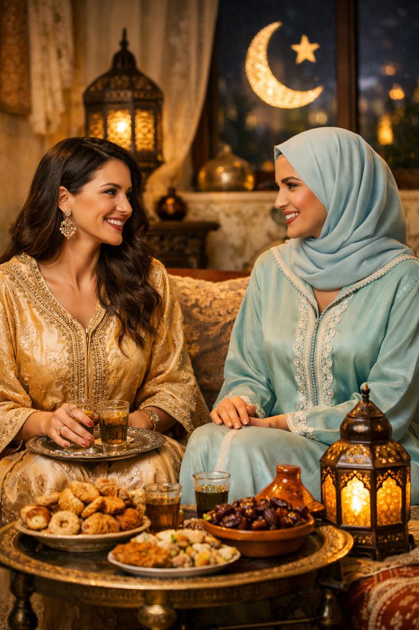 أما القفطان المغربي فيبرز حضوره خلال السهرات الرمضانية والزيارات العائلية، حيث تختار النساء تصاميم أنيقة تعكس الذوق المغربي الأصيل. ويمنح القفطان للمرأة إحساسًا خاصًا بالأناقة والتميز، خاصة خلال المناسبات التي يجتمع فيها أفراد العائلة أو خلال الدعوات الرمضانية التي أصبحت من العادات المتوارثة بين الأسر المغربية.