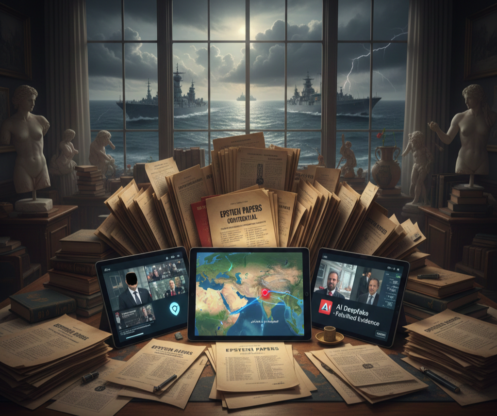 ​وإدراكاً من هذه النخب لخطورة ما قد يتسرب، يبدو أن المخرج الاستراتيجي قد وُضع بعناية عبر ضرب عمق الوثائق من الداخل؛ وذلك من خلال إغراق الفضاء الرقمي بفيديوهات صُممت بالذكاء الاصطناعي تحاكي تورط الشخصيات ذاتها، لخلق حالة من “الفوضى المعلوماتية” يختلط فيها الحق بالباطل. هذه الهندسة التقنية تهدف إلى جعل الحقيقة غارقة في بحر من التزييف، مما يمنح المتورطين مخرجاً آمناً للادعاء بأن علاقتهم بأبستين لم تتعدَّ المعرفة السطحية بملياردير لا يتحملون مسؤولية نزواته الخاصة. وبذلك، يتم دفن الحقيقة من جديد تحت ركام التكنولوجيا وصخب المدافع، لتظل السيادة الوطنية للدول رهينة في يد من يتحكم في خيوط اللعبة. إننا أمام مشهد يتم فيه التضحية باستقرار إقليمي شامل مقابل حماية النخب العالمية من السقوط، حيث تظل “الأرمادا” هي العصا، و”وثائق أبستين” هي المحرقة التي تُبنى على رمادها توازنات القوى الجديدة.