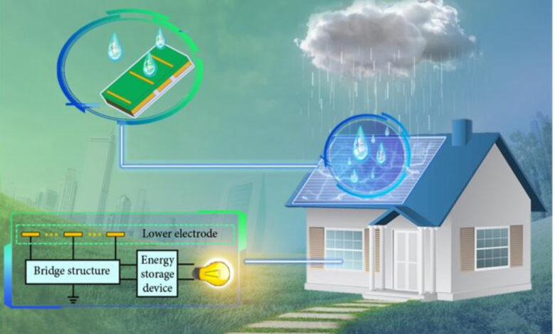 تعتمد بعض الأنظمة على مواد خاصة تُعرف بالمواد الكهروضغطية، حيث تقوم هذه المواد بتوليد شحنات كهربائية صغيرة عند تعرضها للضغط الناتج عن اصطدام قطرات المطر بسطحها. يتم تجميع هذه الشحنات وتخزينها في بطاريات لاستخدامها لاحقًا في تشغيل أجهزة بسيطة مثل المصابيح الصغيرة أو أجهزة الاستشعار. وتتميز هذه الطريقة ببساطتها وإمكانية تركيبها على أسطح المباني، إلا أن كمية الطاقة الناتجة عنها تبقى محدودة.