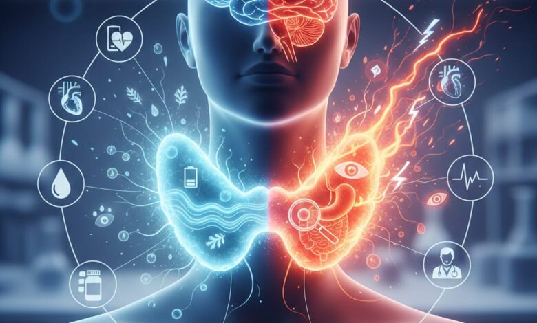 تُعد الغدة الدرقية، تلك الغدة الصغيرة التي تشبه الفراشة والموجودة في مقدمة الرقبة، “محرك الأيض” في جسم الإنسان. عندما يحدث اضطراب في وظائفها، تتأثر تقريباً كل خلية في الجسم، من ضربات القلب إلى سرعة حرق السعرات الحرارية. تفرز هذه الغدة هرمونات رئيسية (T3 و T4) تتحكم في كيفية استخدام الجسم للطاقة، ويتم تنظيم عملها بواسطة الغدة النخامية عبر هرمون يُسمى TSH.