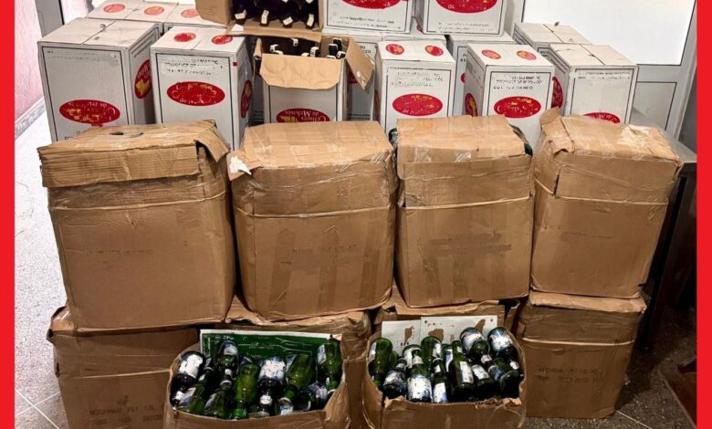 وقد جرى توقيف المشتبه فيه بأحد أحياء مدينة أكادير، وهو في حالة تلبس بحيازة وترويج المشروبات الكحولية على متن سيارة نفعية، حيث أسفرت عملية الضبط والتفتيش المنجزة في إطار هذه القضية عن حجز 1190 قنينة من مختلف أنواع المشروبات الكحولية.