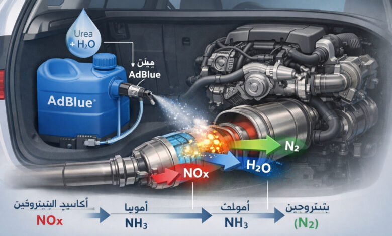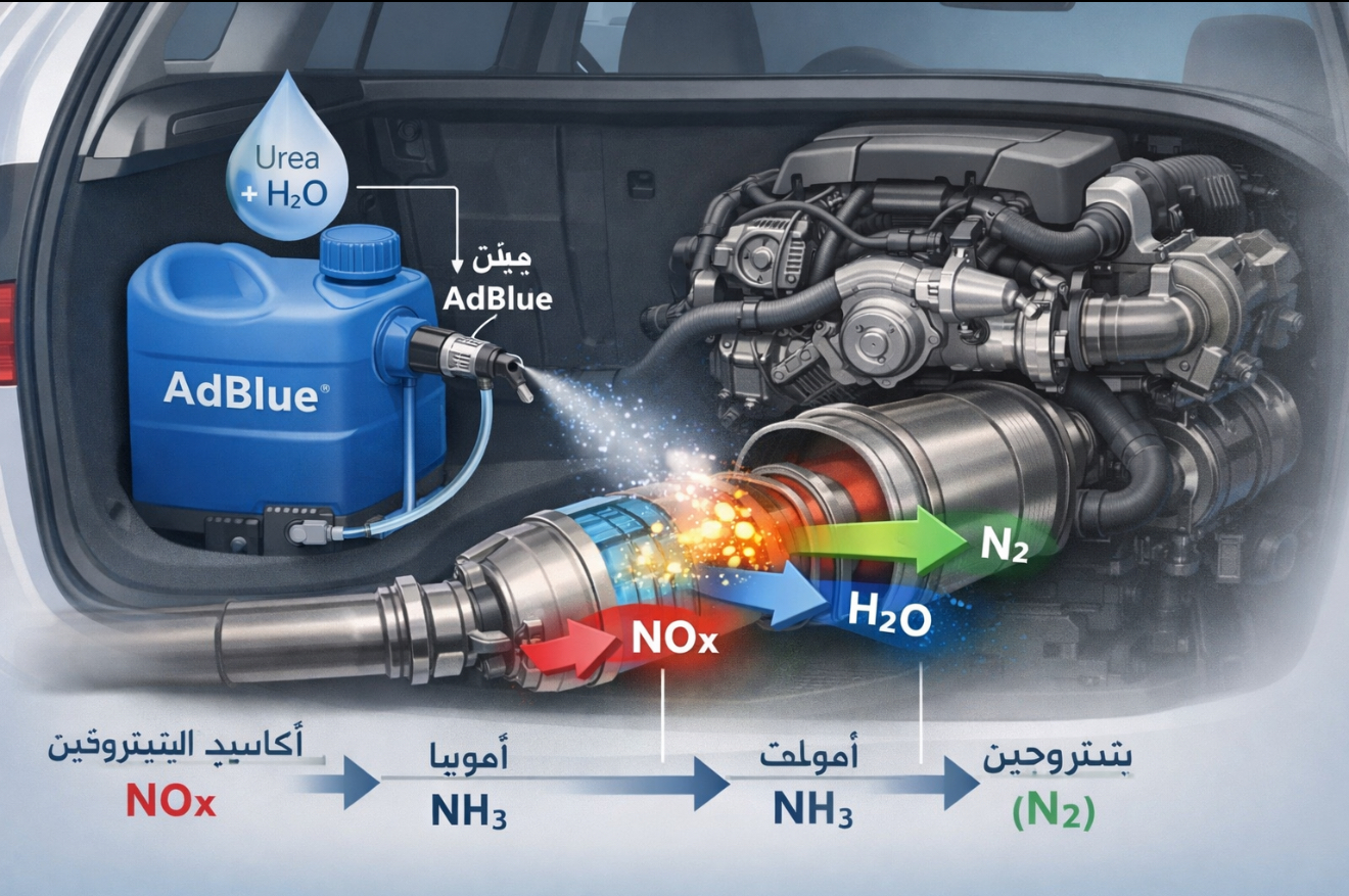 عتمد عمل AdBlue على مبدأ تقني يهدف إلى تقليل الغازات السامة الناتجة عن احتراق الوقود في محركات الديزل الحديثة. فخلال تشغيل المحرك، تنتج عملية الاحتراق غازات عديدة من بينها أكاسيد النيتروجين، وهي مواد ملوِّثة تضر بالبيئة وصحة الإنسان. هنا يأتي دور AdBlue الذي لا يشارك في عملية الاحتراق داخل المحرك، بل يُستعمل لاحقًا داخل نظام العادم.