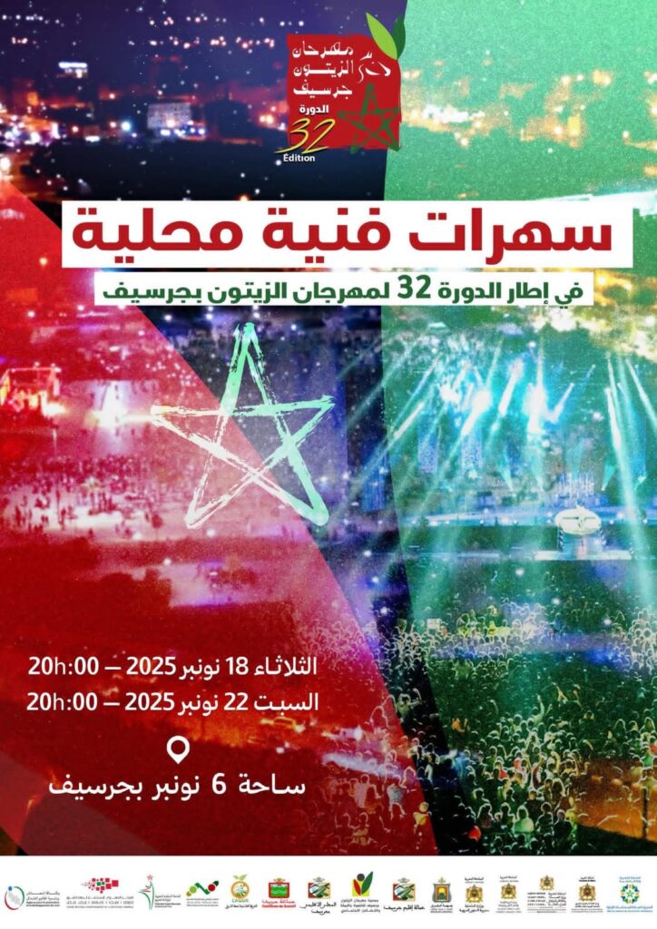 في أجواء احتفالية مفعمة بالأصالة والانفتاح، احتضنت مدينة جرسيف خلال الفترة الممتدة من 15 إلى 23 نونبر 2025 فعاليات الدورة الثانية والثلاثين لمهرجان الزيتون، الذي يُعد من أبرز التظاهرات السنوية بالإقليم، بل وأهم حدث ميّز السنة على الصعيد المحلي، لما له من أثر اقتصادي وثقافي واجتماعي متجدد.